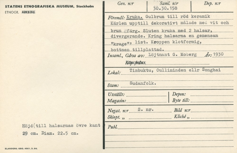 | Källa <presOrganization> | Statens museer för världskultur - Etnografiska museet |
