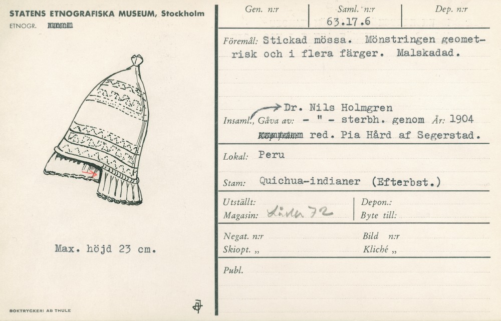 | Källa <presOrganization> | Statens museer för världskultur - Etnografiska museet |
