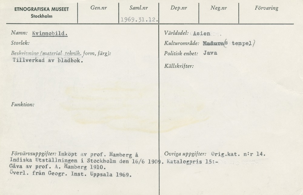 Källa <presOrganization> Statens museer för världskultur - Etnografiska museet