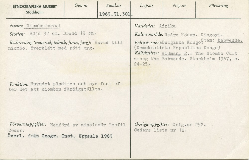 | Källa <presOrganization> | Statens museer för världskultur - Etnografiska museet |