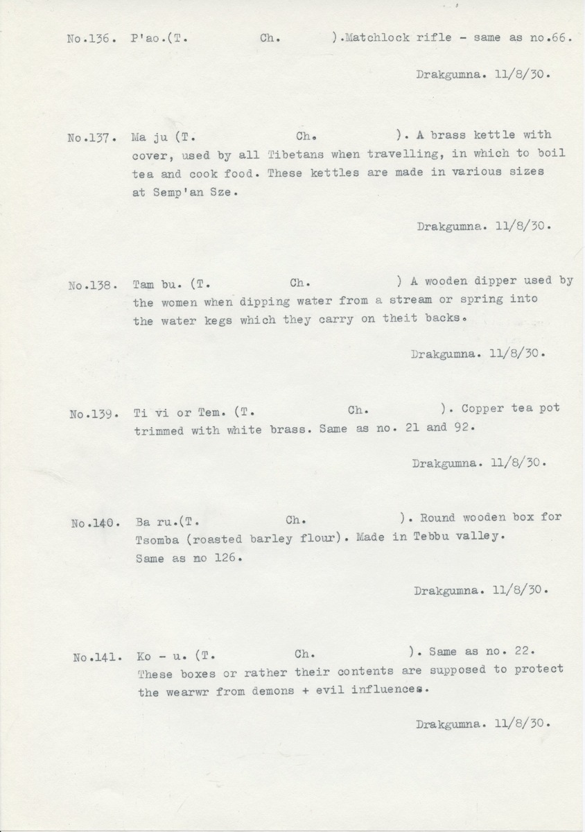 • Sida ur förteckning över samling från David Hummel, 1935.51, skriven på engelska. Avskrift av handskriven katalog.