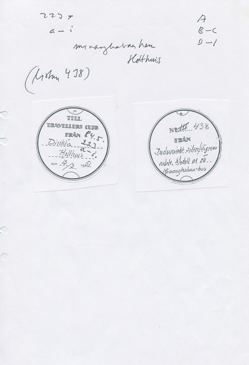 • Sida ur pärm för samlingen Travellers Club, 1984.05.