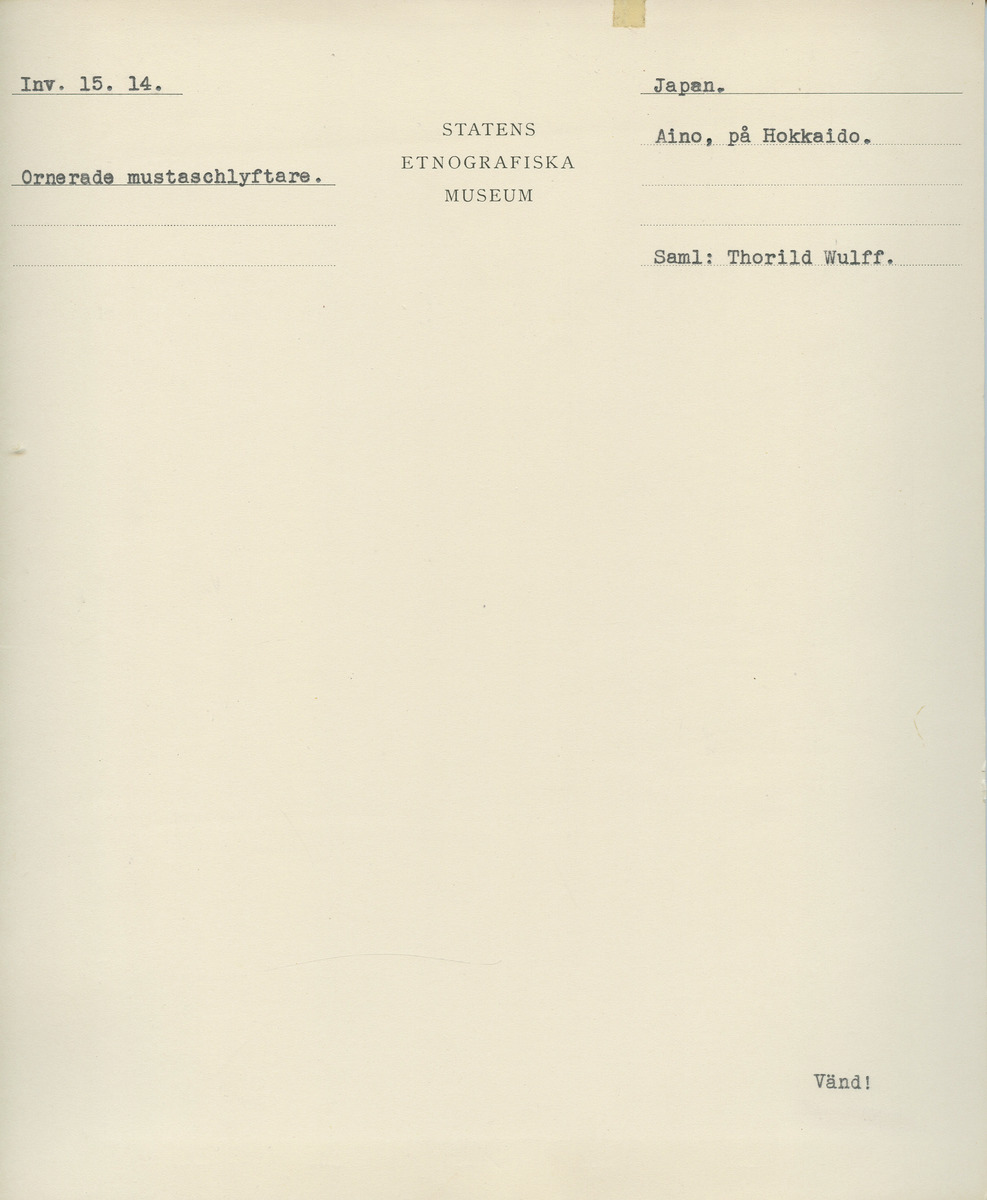 • Katalogkort ur Etnografiska museets arkiv.
