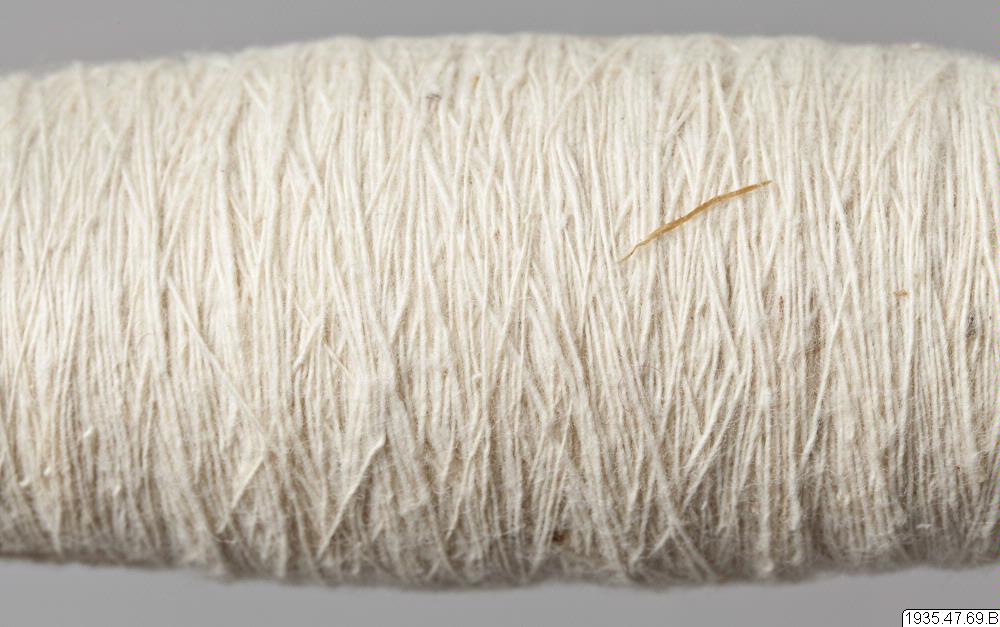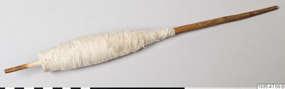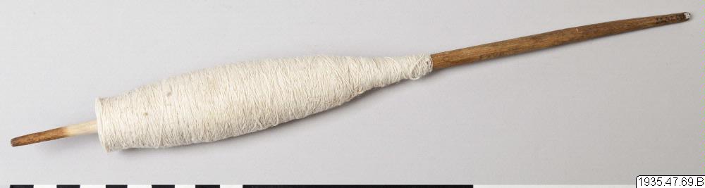 • Pinne, svagt spolformig, del av slända. Uppspunnen bomullstråd.