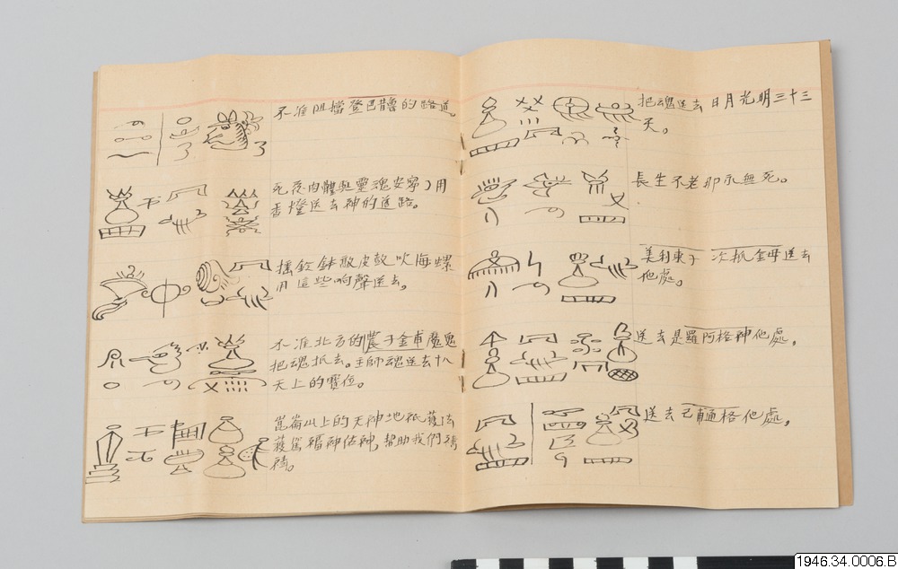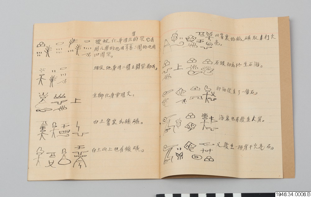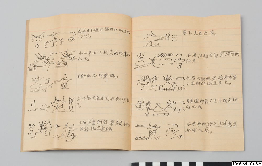 Manuskripten insamlades av missionär Karl Asp (funna i hydda under vistelsen 1927-1933, se Fält 2001), som vid sin missionsstation Dengyue i norra Yunnan-provinsen i Kina lät översätta en del av dem till kinesiska.