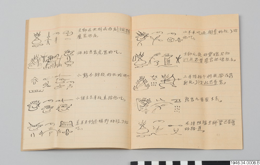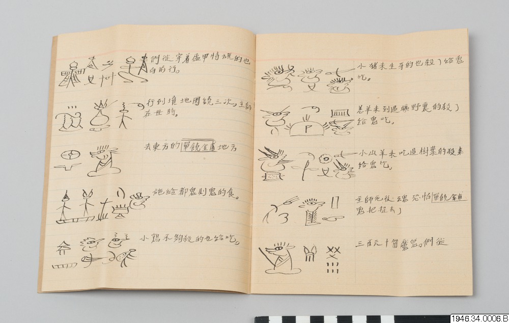 Manuskripten insamlades av missionär Karl Asp (funna i hydda under vistelsen 1927-1933, se Fält 2001), som vid sin missionsstation Dengyue i norra Yunnan-provinsen i Kina lät översätta en del av dem t...
