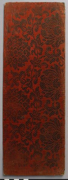 Mått efter ett föremål av de totalt 157 omärkta pärmarna/tygproverna numera märkta: omärkt 1399. 40 stycken ligger på Y.08.D.02.E. 117 stycken på Y.08.D.02.D. Några föremål är märkta: 2.092. Endel föremål har etikett med asiatisk text.