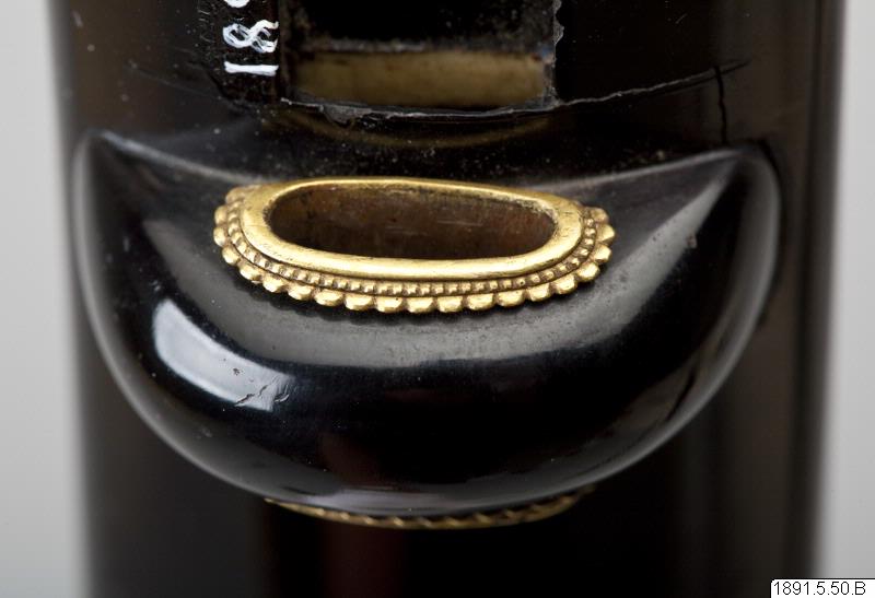 • skida i svart lack med två uttag för sidodolk.På skidan befinna sig japansk gaffel och bordskniv som fältutrustning.(Generalkatalogen)
