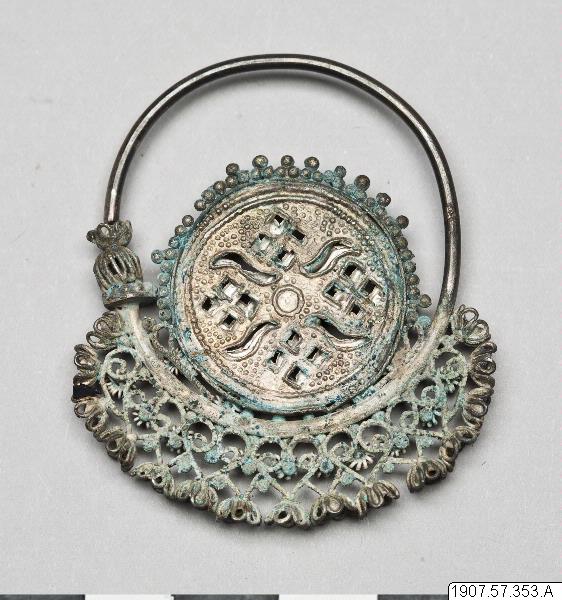 • Örhänge med dekor av genombrutna blommor i rader längs nedre delen.