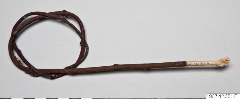 Kvist som används till tandborste. En bit av barken skalas av och änden ruggas upp så att en liten borst bildas för att rengöra tänderna. Den andra änden är ihoprullad.