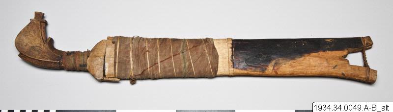 • Bolo, av trä med hylsa. "Välsignad av Mamur". Bolo 41 cm, handtag 14 cm, hylsa 45 cm. (katalog)