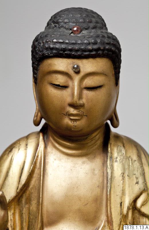 • Skulptur föreställande Amida nyorai (Amitabha), förgylld.