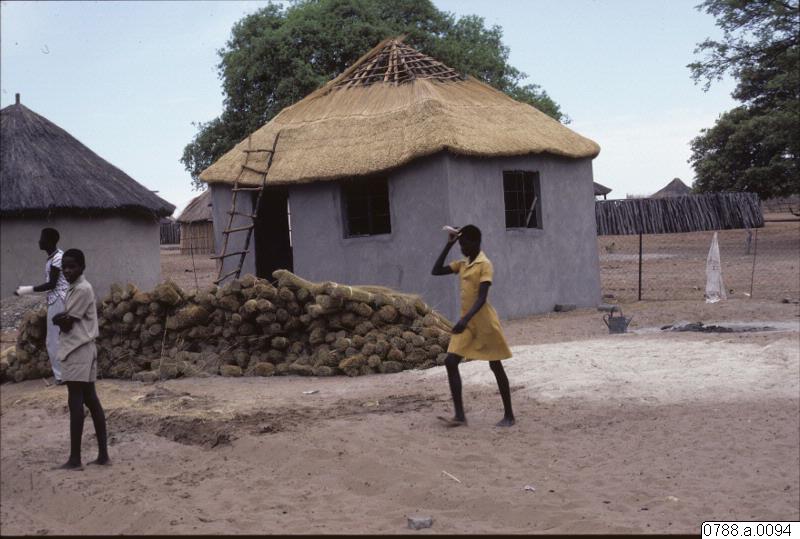 Vass till taktäckning till en gemensam byggnad (skola). Lastbilen är en "Drought Relief Truck". Sepupa.fototext W. Östberg