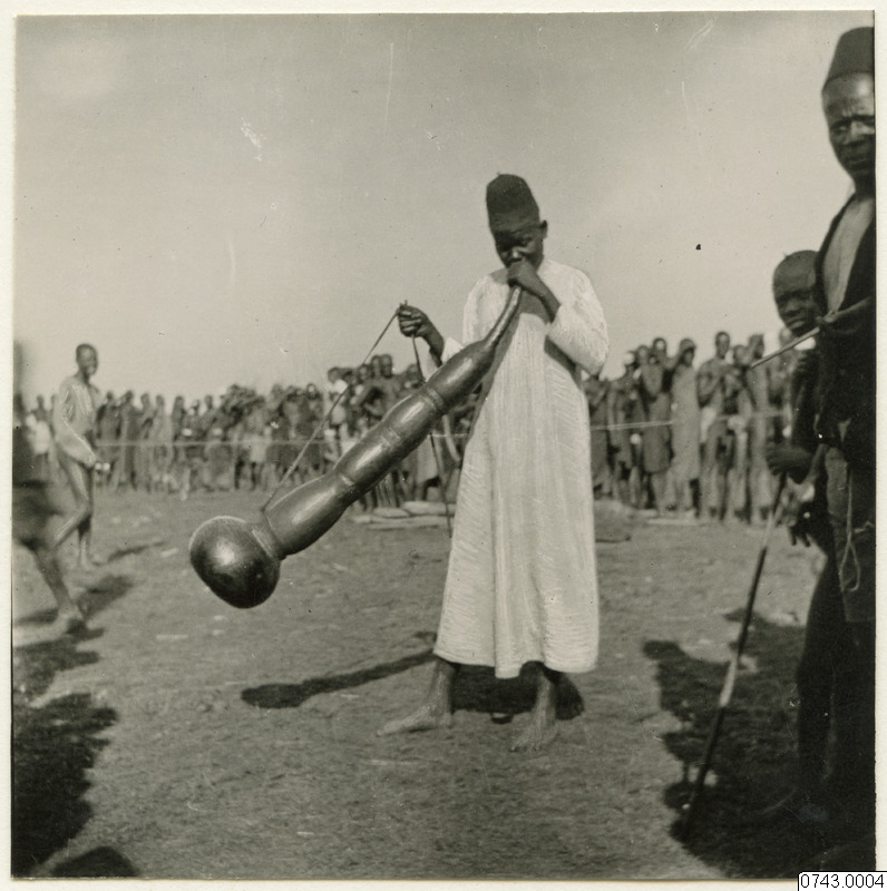 • Ant. av professor Lindblom: Trumpet gjord av (kalebasskalet av flera) kalebasser. Se Lindbloms samling. Norr om Kisumu, vid Victoria Nyanza.