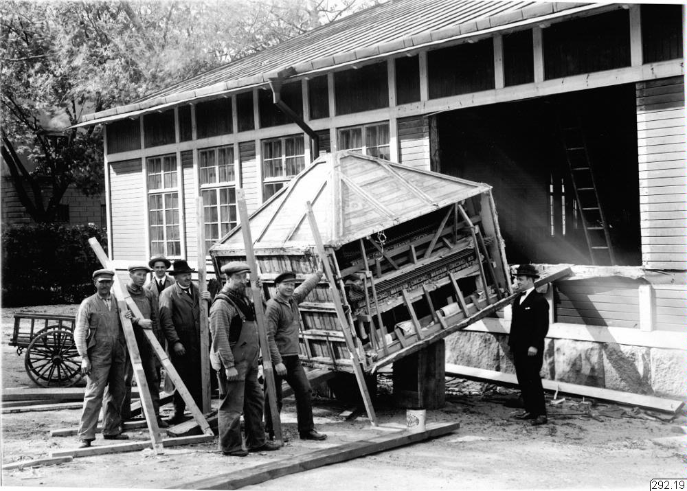 • Tempelmodellen tas in i magasinet. 1931. Denna modell skickade 1932 till utställningen i Chicago. Ny tempelmodell kommer från Kina 1933.