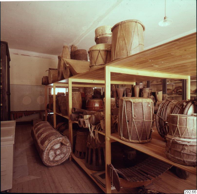 • Etnografiska museet 1960-tal. Rum med musikinstrument.