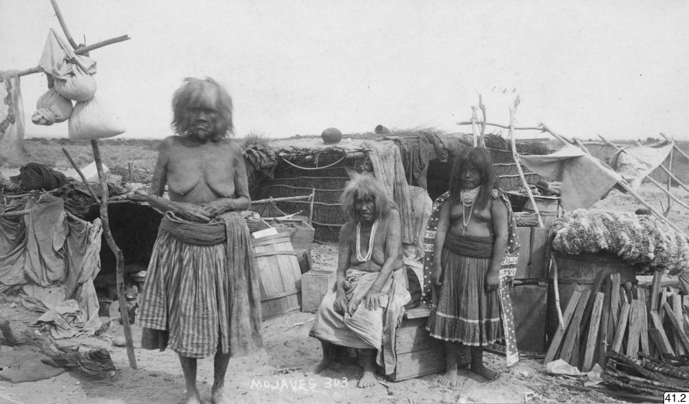 • Mohave- (mojave-) indianer; kvinnor vid sina bostäder.