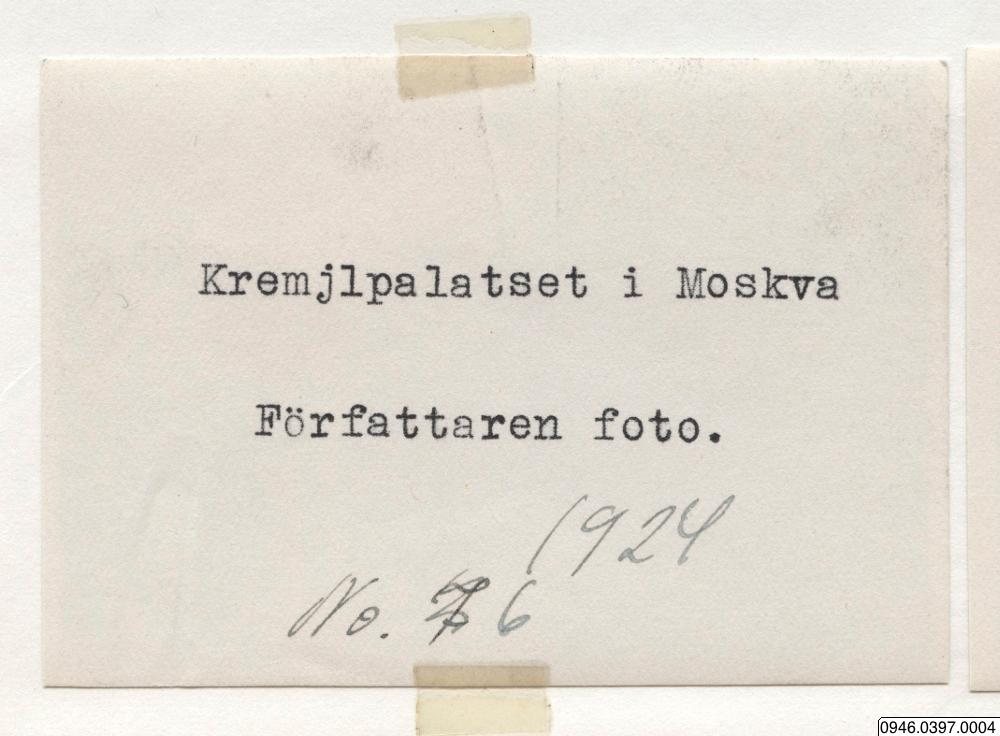 Kreml Moskva. (Ant. foto baksida: Kremjlpalatset i MoskvaFörfattaren foto. 1924 No. 76)