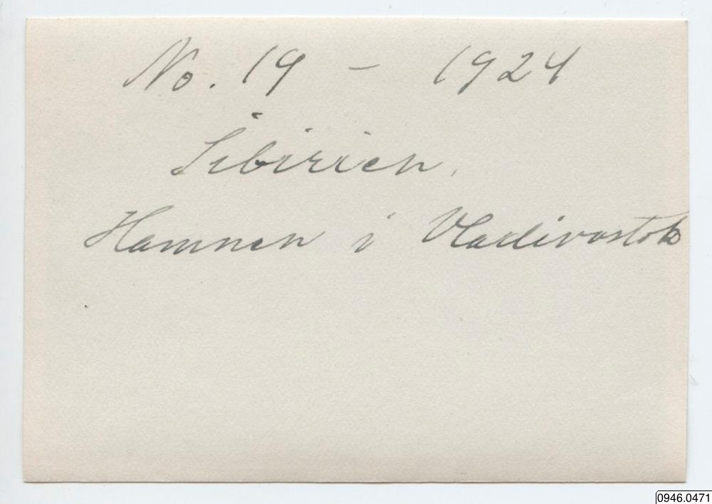 • Anteckning baksida foto: "No. 19 - 1924 Sibirien. Hamnen i Vladivostok"