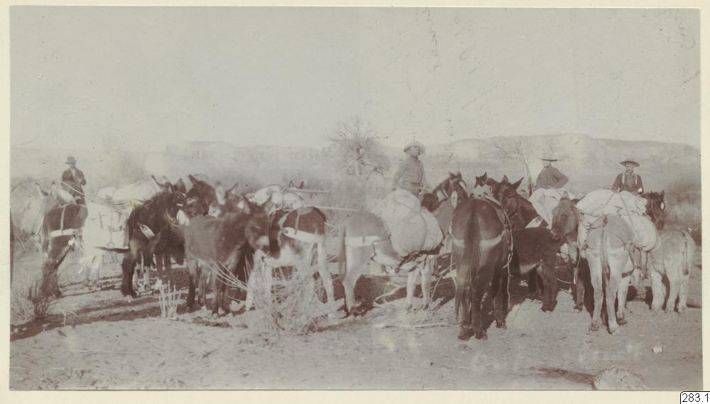 Ant.: Part of our outfit at Bluff City, Utah, consisting of 15 pack animals, 7 riding horses and seven men. (katalogkort)