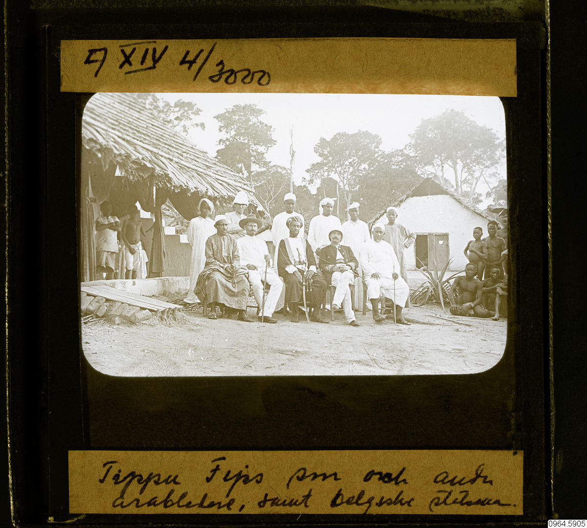 Sefu bin Hamid, the son of Tippu Tib, with his representative in the Congo and two Belgian officers of the Force Publique, Lieutenant Joseph Lippens and Sergeant Henri De Bruyne, at Stanley Falls.