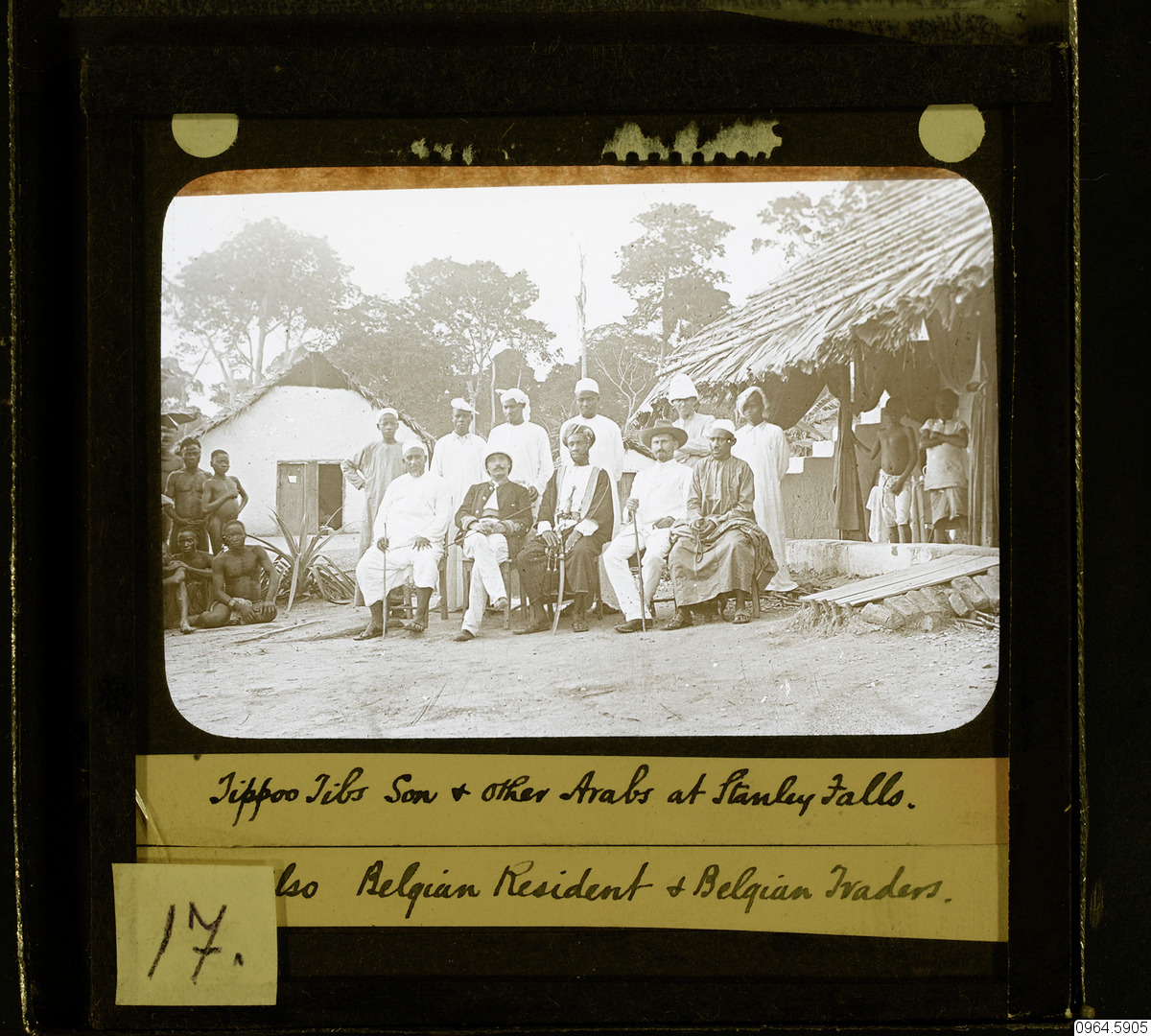 SEFU, SON OF TIPU-TIPU, AND HIS REPRESENTATIVE IN CONGOLAND, WITH THE TWO BELGIAN OFFICERS WHO WERE SUBSEQUENTLY KILLED. Photo taken by Rev. William Forfeitt at Stanley Falls in 1891. (Johnston 1908:425)