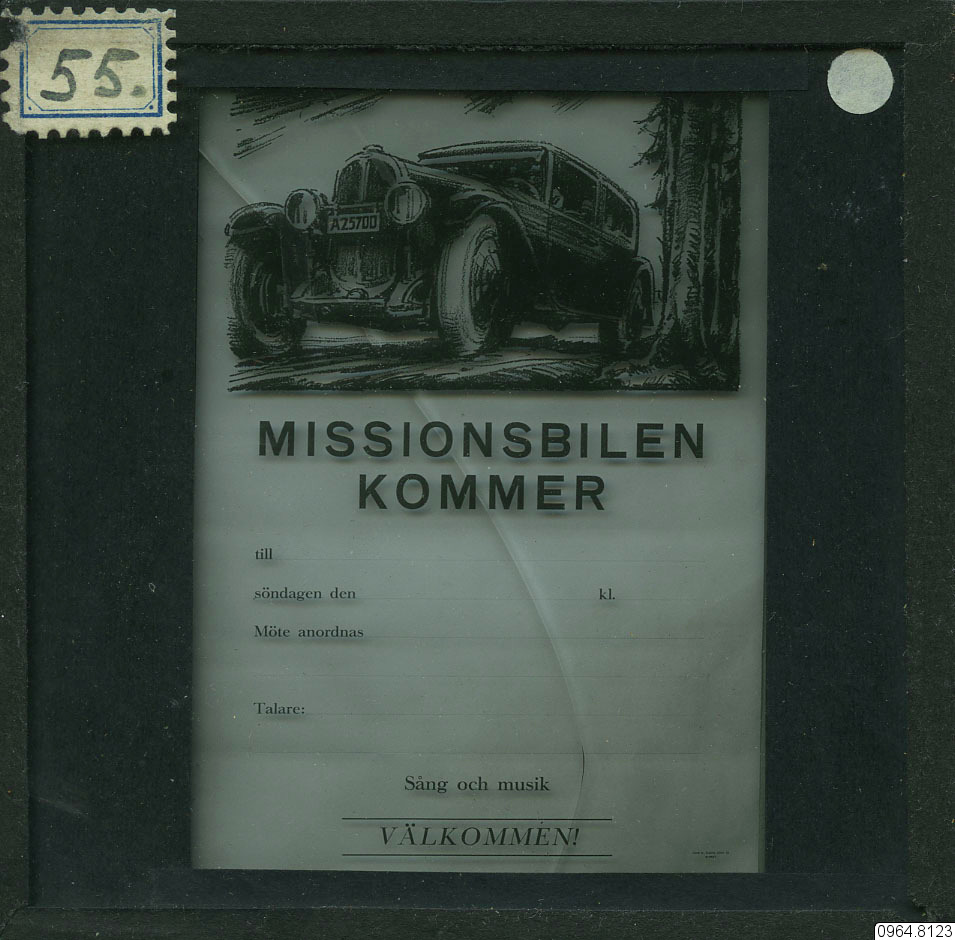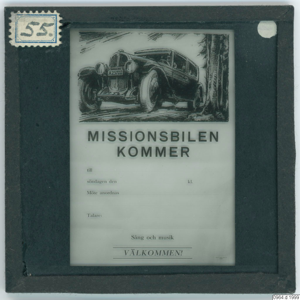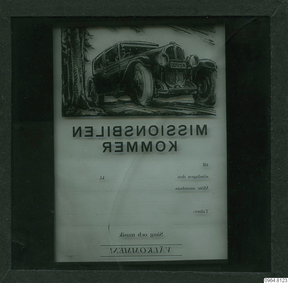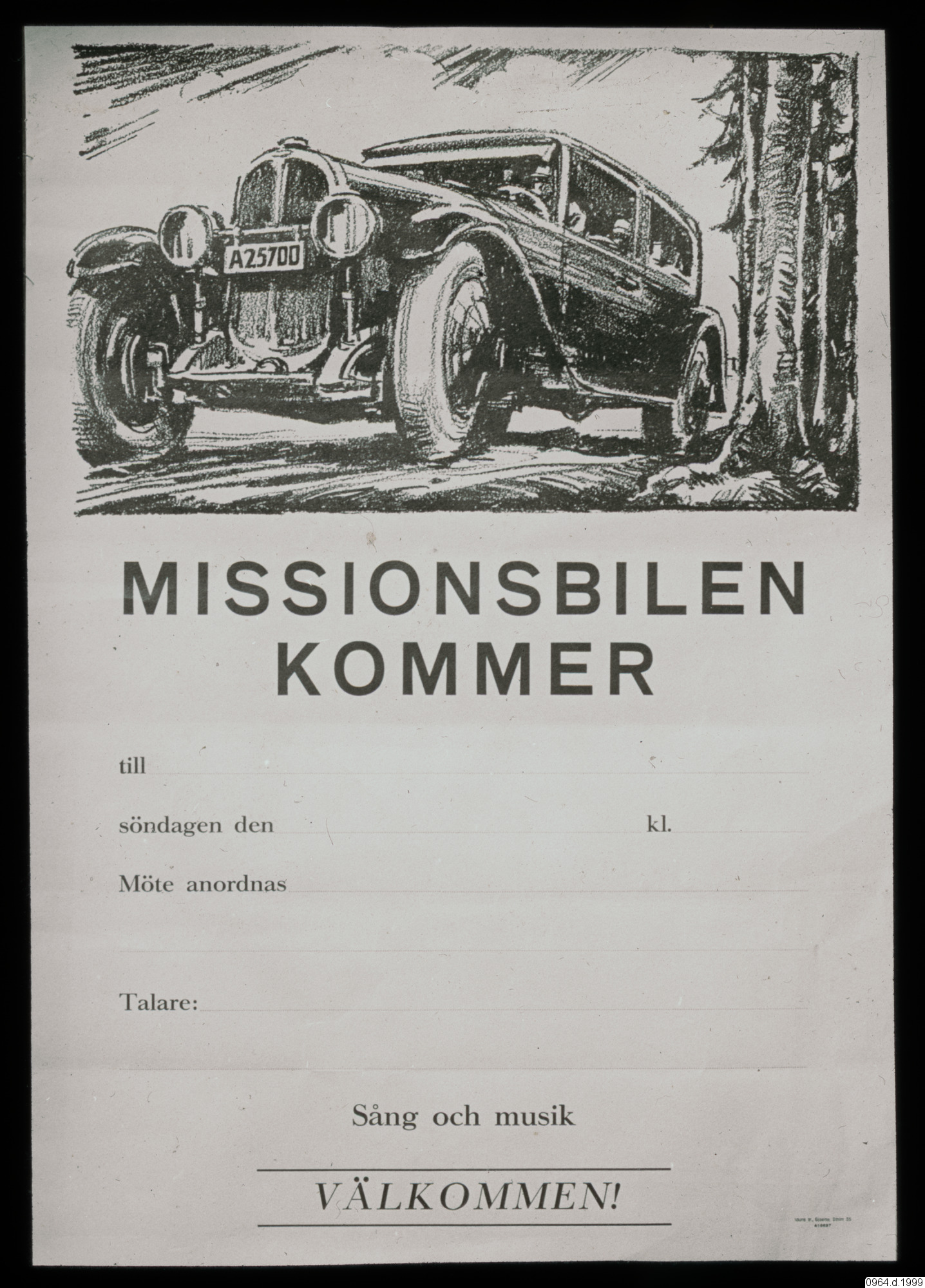 • Repro av affisch/plansch: Missionsbilen kommer.