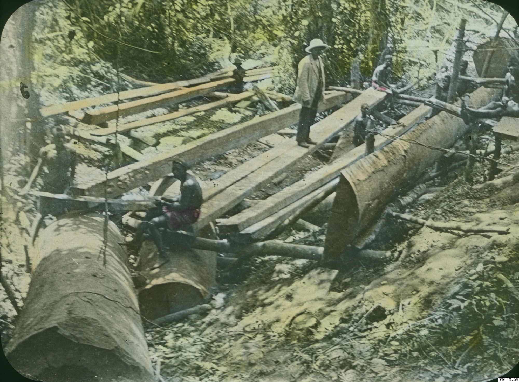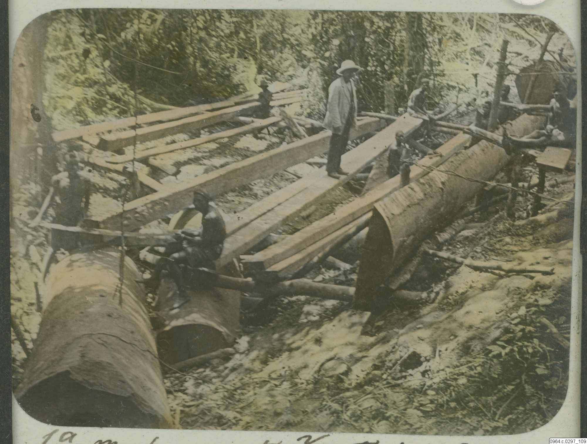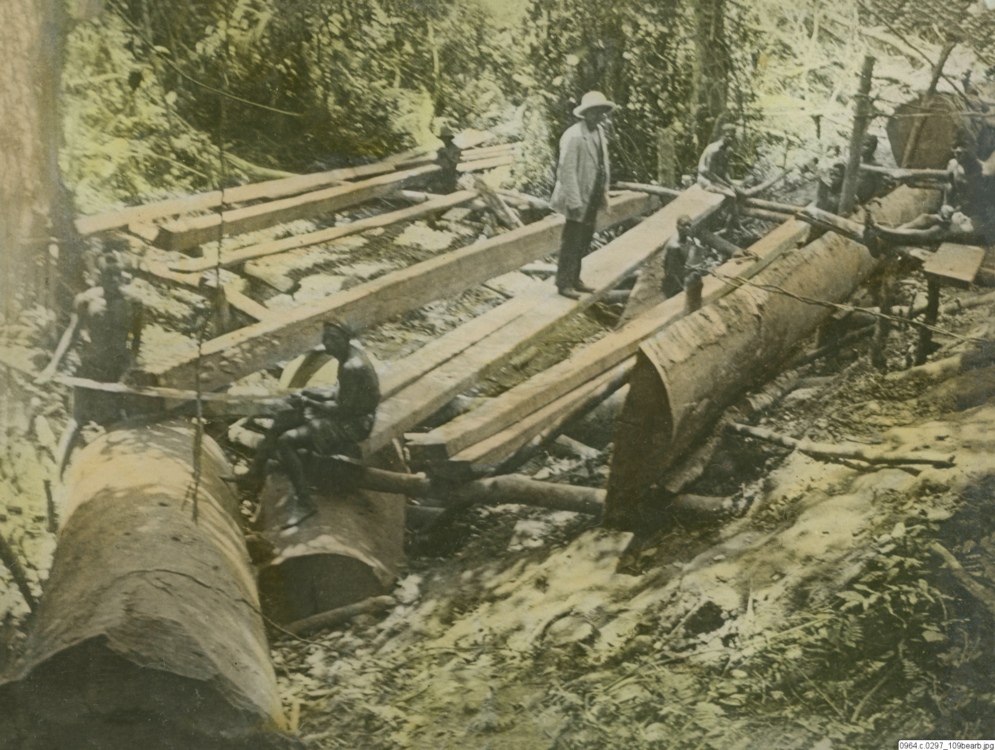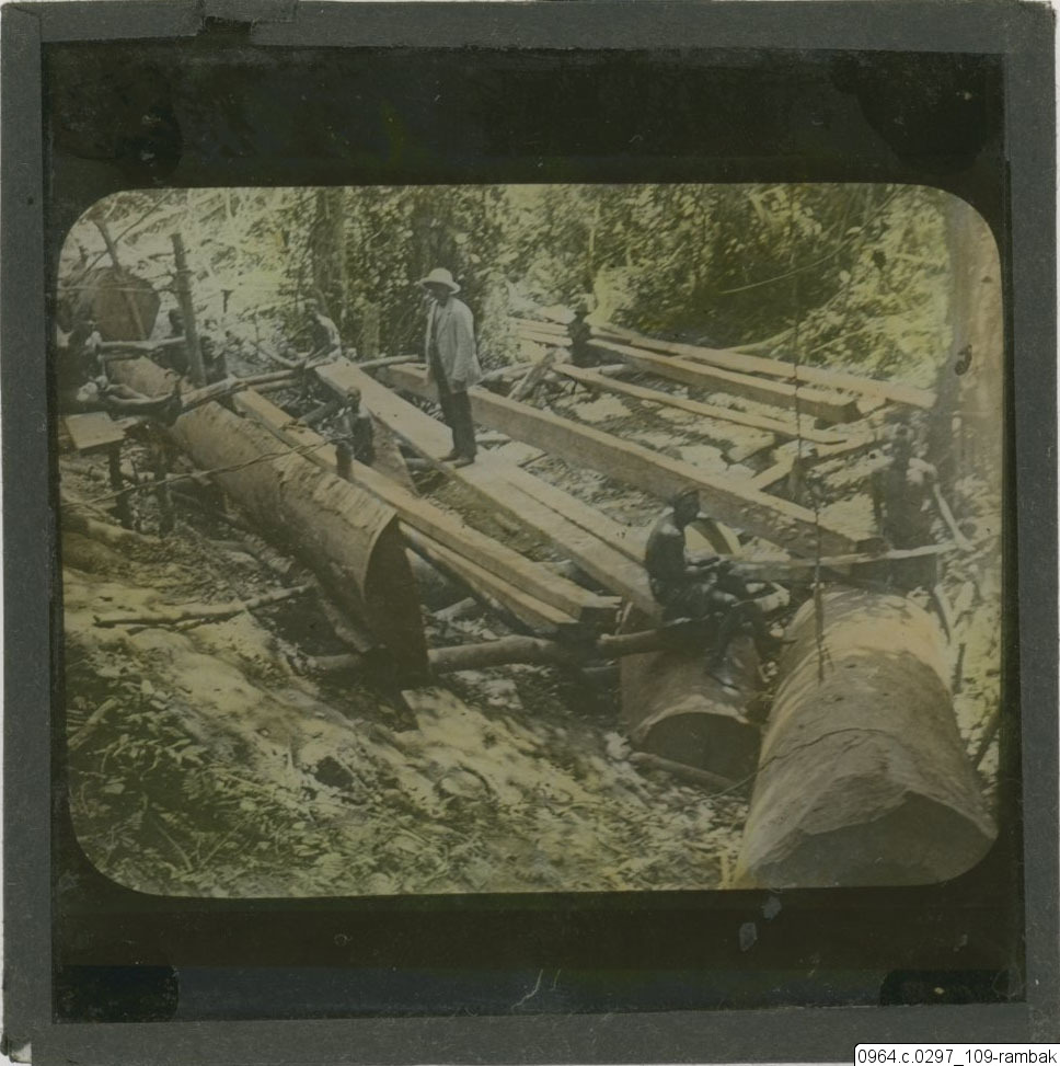 mahogny, sågning, virke, trädfällning, brädor, missionärer, fotografi, photograph