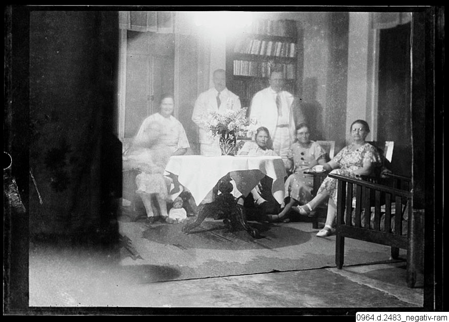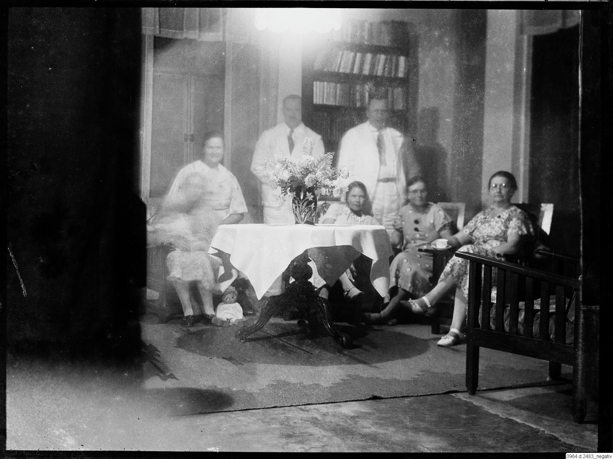 gruppbild, kvinna, bord, fåtölj, man, interiör, fotografi, photograph