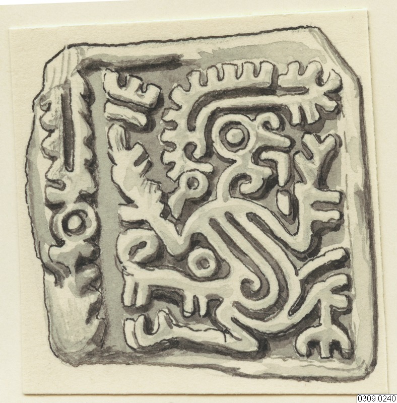 Teckning av mönsterstämpel. Linné, Archaeological Researches at Teotihuacan, Mexico, (1934). Fig. 224.