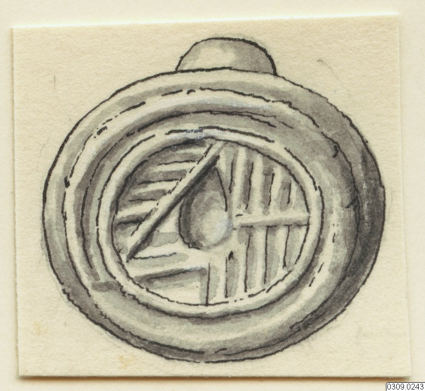 Teckning av mönsterstämpel. Linné, Archaeological Researches at Teotihuacan, Mexico, (1934). Fig. 227.