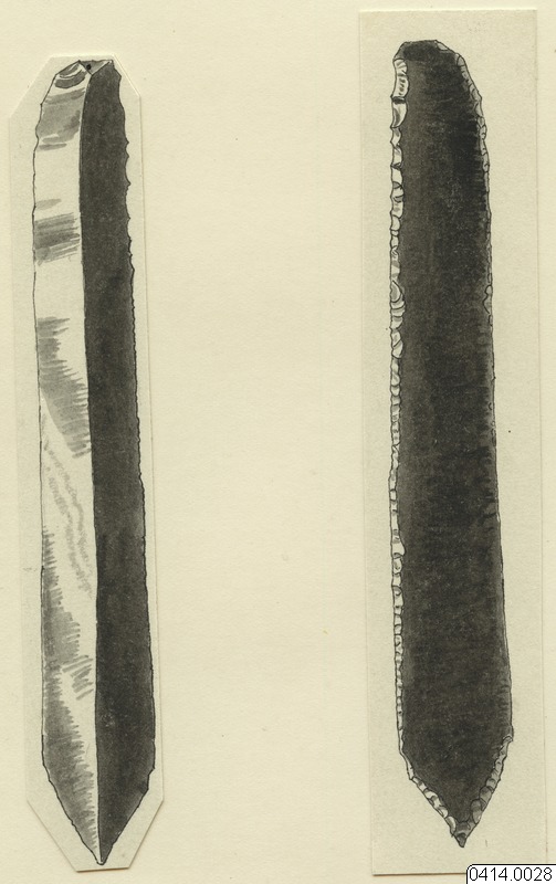föremålsbild, kniv, obsidian, teckning, Teckning, drawing