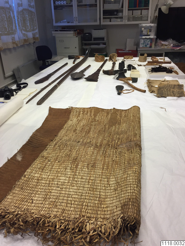 Besök i magasinet, 16 oktober, 2017 för att studera föremål från Söderhavet som samlats in under James Cooks expeditioner av Joseph Banks och Anders Sparrman.