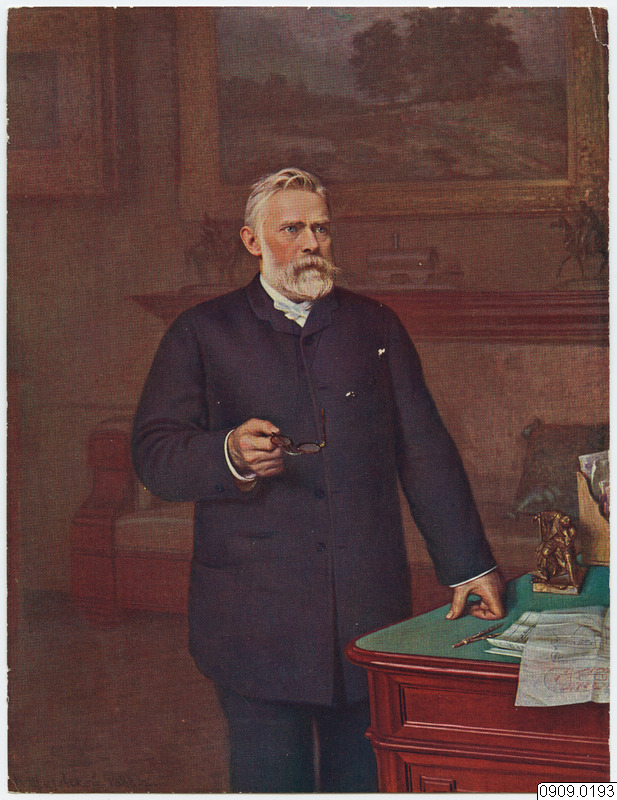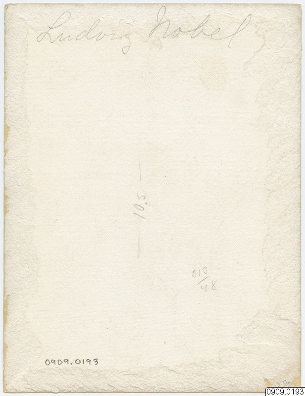 • Tidigare stod angivet att motivet är Ludvig Nobel (1868-1894),vilket är felaktigt. Detta porträtt föreställer dennes farbror Ludvig Nobel (1831-1888) (Michael Barrett, 2024-03-11).