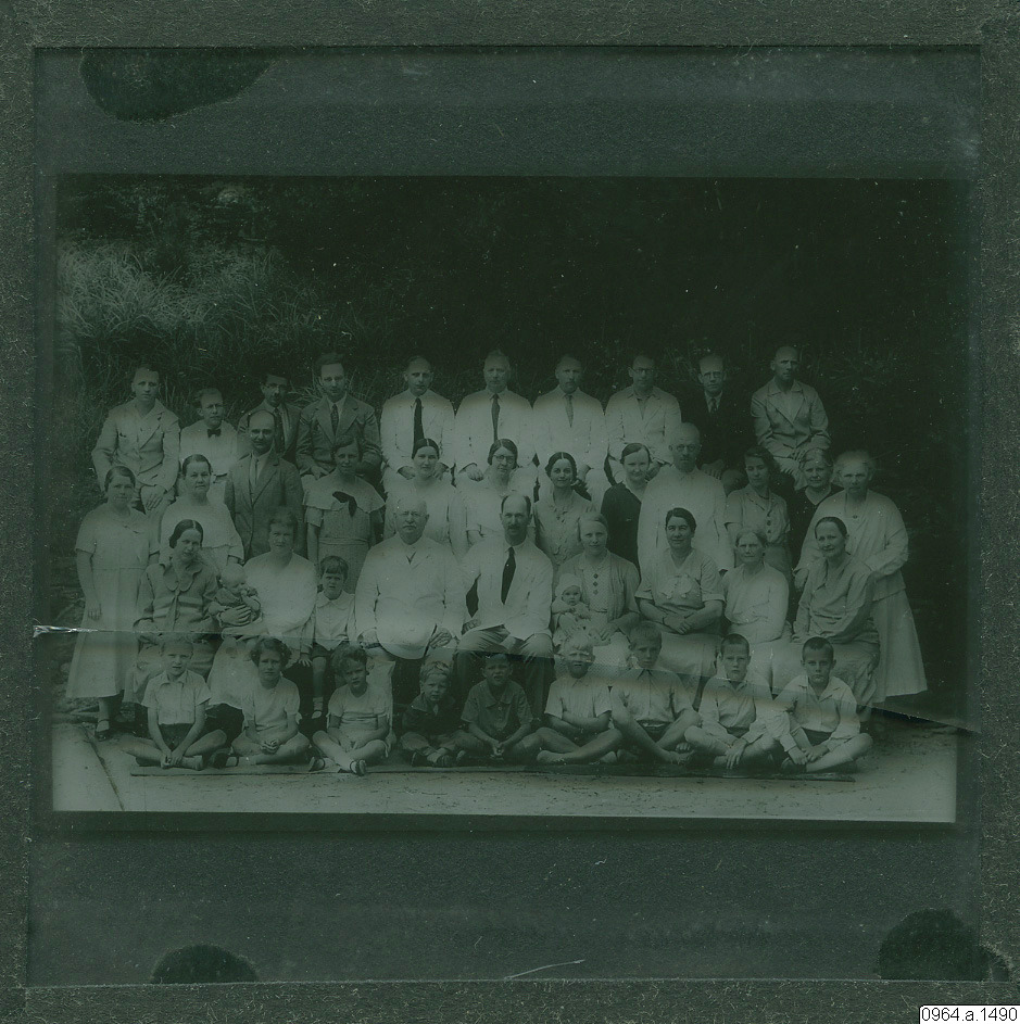 Palmaer på besök i Kina 1933-1934. Övre raden: 1. 2. 3. R. S. Björkdahl. 4.Sommarström, 5. 6. 7. Nyström, 8. 9. Sköld Sam, 10. Rad 2: 1. 2. Berg, 3. 4. D. R. Wahlquist, 5. Björkdahl, 6. Herta Sommarström (?) 7. 8. 9. Nyström, 10. Samuelsson, 11. Pettersson, 12. Rad 3; 1. 2. 3. Wahlquist, 4. 5. Dr. Georg Palmaer 6.Franzén ?, 7. Samuelsson. 8. Sittande (missionärsbarn): 1 2 3 4 5 6 7 8 9