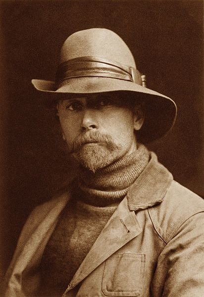 Edward S. Curtis, född 16 februari 1868, död 19 oktober 1952, fotograf. Curtis föddes i delstaten Wisconsin i norra USA som andre son till predikanten Johnson Curtis och hans fru Ellen Sheriff Curtis. Curtis börjar i unga år som lärling hos en fotograf. Efter att familjen flyttat till Washington State blir han 1892 delägare i en fotostudio i Seattle. Samma år gifter han sig och både hans egen familj och fruns kommer att arbeta inom hans affärsverksamhet. Vid mitten av 1890-talet har han blivit Seattles ledande societetsfotograf och känd i hela landet för sina porträttfotografier. 1900 bestämmer sig Curtis för att dokumentera de nordamerikanska indianerna, deras sätt att leva, deras muntliga berättelser, hövdingars levnadshistoria och de indianska språken. Han lyckas få stöd till projektet av bland annat industrimagnaten J.P. Morgan och president Theodore Roosevelt. Curtis kommer att med vissa avbrott ägna sig åt projektet i trettio år. Han besöker indianska stammar från den mexikanska gränsen i syd till Berings hav i norr, från Mississippi i öst till Stilla havskusten i väst. 1907 utkommer första boken i serien The North American Indian och 1914 presenterar han en dokumentärfilm, In the Land of the Headhunters, om indianerna på nordvästkusten. Efter att Curtis och hans fru skilts sig 1919 flyttar han med sin dotter till Los Angeles där han delvis kommer att arbeta som stillbilds- och filmfotograf i Hollywood. Samtidigt fortsättar han med sitt projekt om Amerikas indianer. På 1920-talet gör han en resa till Arktis för att dokumentera indianerna och eskimåerna i nordligaste norr. 1930 utkommer den tjugonde och sista volymen av The North American Indian. 1952 avlider Edwars S. Curtis i en hjärtattack i Los Angeles. (Wikipedia, 2017-08-22)