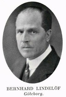 Bernhard Lindelöf , konsul, grosshandlare, försäkringsdirektör, Göteborg, född i Farhult, Malmöhus län, 20/10 1871 av smidesmästare J L och Boel Jeppsson, gift med Ebba Almqvist. Etablerar efter studietiden, kont. prakt o utlandsresa en egen agentur- och grosshandlaraffär i Göteborg 1894 (Lindelöf & Co från 1902). Chef för försäkringsbolaget AB Skandias Göteborgskontor 1911—1937. Styrelseordförand...
