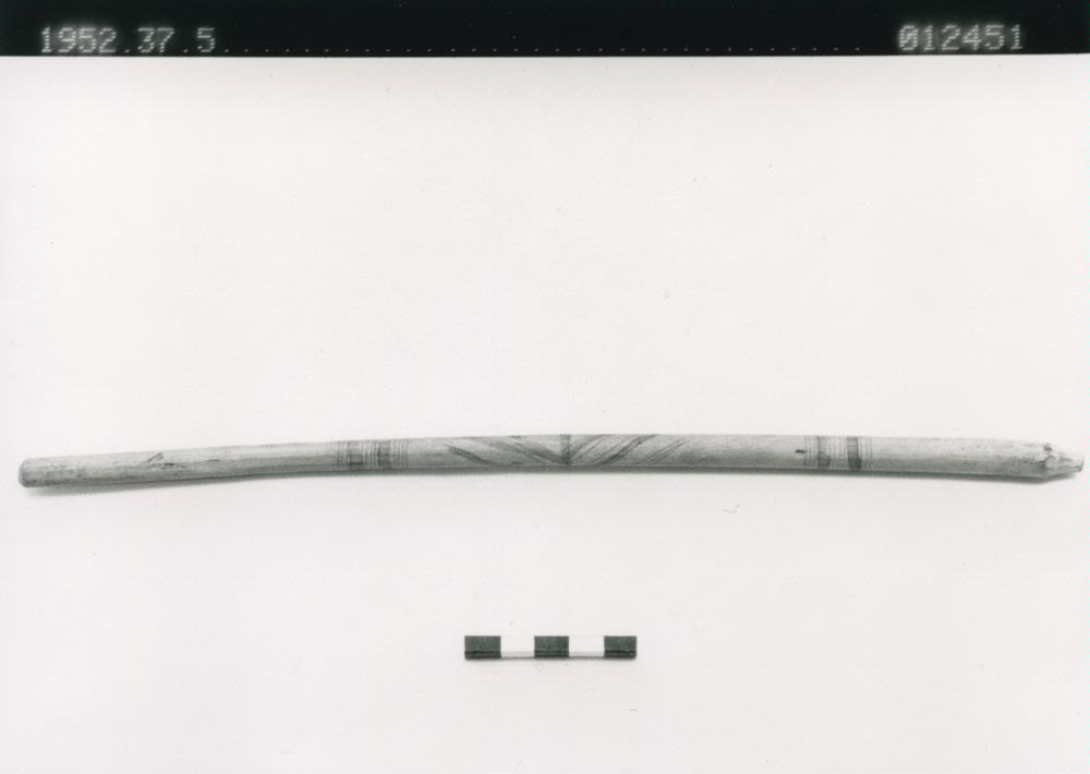 Skaft av svarvat trä till haschischpipa. Tillhörande piphuvud finns bland nummer 7-12 i samlingen (1952.37). Sebsi (marockansk-arabiska = pipa) användes för att röka kif (obehandlad haschisch) blandat med tobak. Denna drog framkallar en känsla av välbefinnande. Tillåtet att odla Kif i Marocko för husbehov och egen konsumtion. Staten odlar för försäljning, främst i norra Marocko. Litteratur: Rausch und Realität. Drogen in Kulturvergleich. Hrsq von Gisela Völger 2 vol. Ethnologica. N.F.Bd 9, 1981 in Auftrag der Gesellschaft für Völkerkunde. Köln (i FME bibliotek). Bellakhdar, Jamal, cop. 1982: Herb Drugs and Herbalists in the Maghreb. Venzloft, Helga, 1977: Der marokkanische Drogenhändler und Seine Ware.