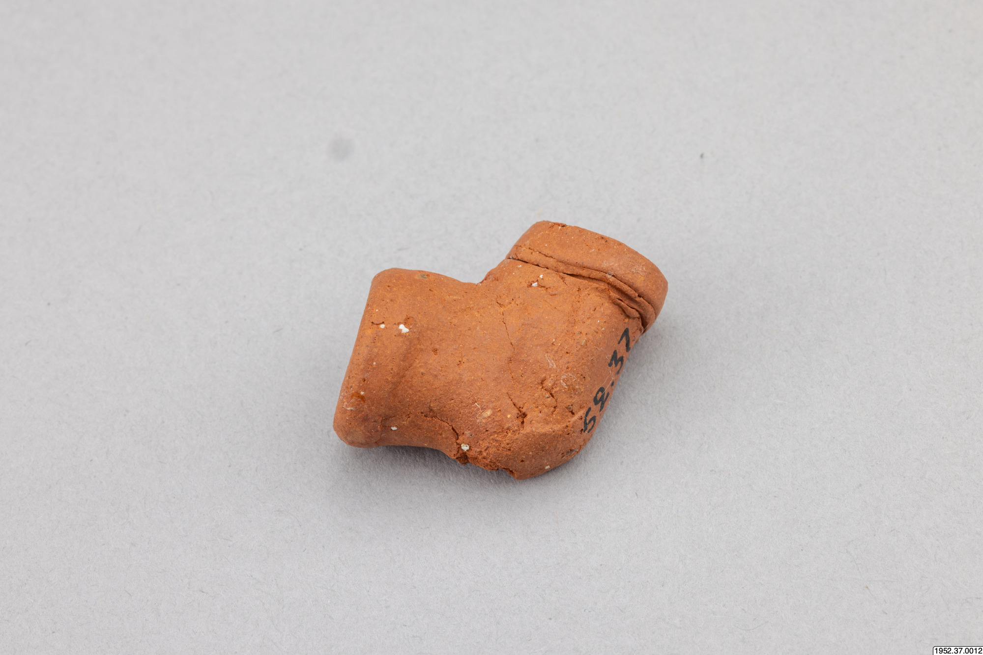 Piphuvud av röd, bränd, lera. Löstagbart. Tillhörande pipskaft finns bland nr 1-6 i samma samling (1952.37). Användes vid haschischrökning. Sebsi (marockansk-arabiska = pipa) användes för att röka kif (obehandlad haschisch) blandat med tobak. Denna drog framkallar en känsla av välbefinnande. Tillåtet att odla Kif i Marocko för husbehov och egen konsumtion. Staten odlar för försäljning, främst i no...