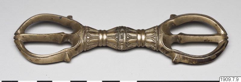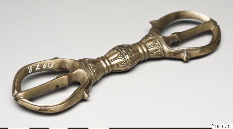 Trespetsad vajra (ofta översatt med "åskvigg") som på japanska kallas sanko. Vajran är ett rituellt föremål som används inom esoterisk buddhism (Vajrayana), kallat åskvigg på svenska, vajra på sankskrit och med olika beteckningar på japanska beroende på antalet spetsar. Detta används av prästen och kommer ursprungligen från Indien. Det används överallt där den esoteriska buddhismen finns. Den best...