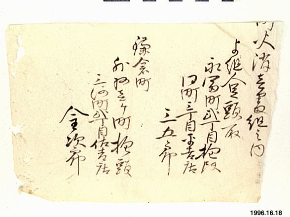 • Papper med tuschskrift, mycket skadad av insekter. (PH)