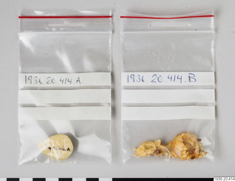 Materialtest på föremålet utfördes 199610 30 av plastkonservator David Pettersson, där materialet fastställdes till cellulosanitrat./CR