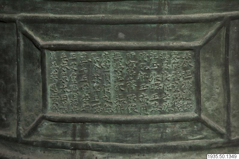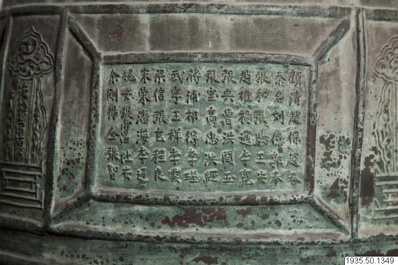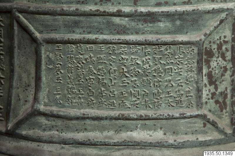 "Bronsklocka från tempel. Se avklappning av inskription. Signerad Ming." (MLK)