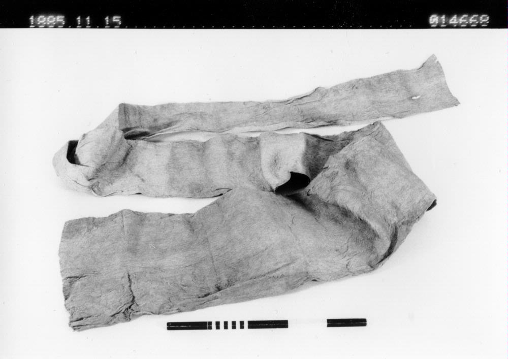 Mansgördel, "giparovå", (möjligen vävd) av bast från kålpalmen, blekgul. En dylik gördel utgjorde indianernas enda plagg. Dess vanliga bredd växlar mellan 16 och 20 cm, dess längd från 2,5 till 3 meter. Då mannen klär sig tar han den ena änden i munnen, den andra, hoprullad, mellan benen och upp baktill. Den lindas nu 2-3 ggr hårt om livet, framfliken nedfälles och bildar ett fyrkantigt förkläde. varefter toaletten är färdig. Den. Vävstol som användes vid förfärdigandet av ett, dylikt basttyg är ytterst enkel, nämligen en ram av fyra käppar. ,Se Ymer 1885, s 189 och Bovalli fört. Nr 22. • Orig.nr7 2468, Talamanca (generalkatalogen)