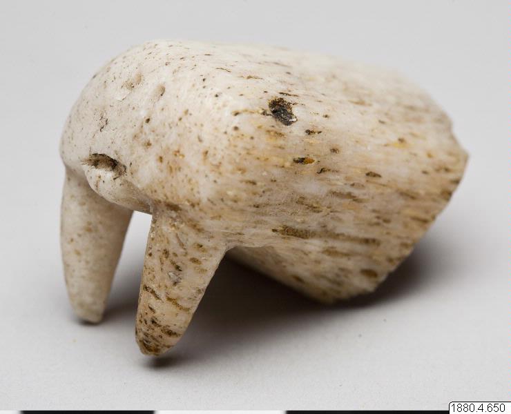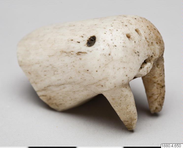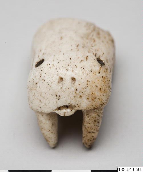• Benskulptur, föreställande ett valrosshuvud. (generalkatalogen)