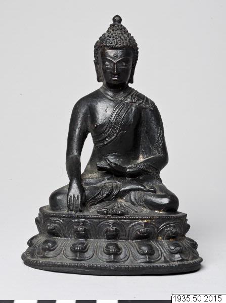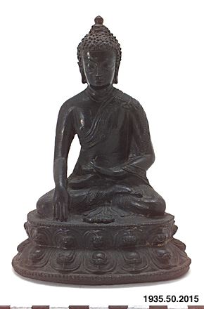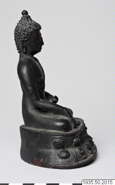 "Buddha- Cakya-muni NoNo 15-43 Same (som föregående nummer) without beggingbowl. No 15-blacked bronze." (Gomboievs katalog)