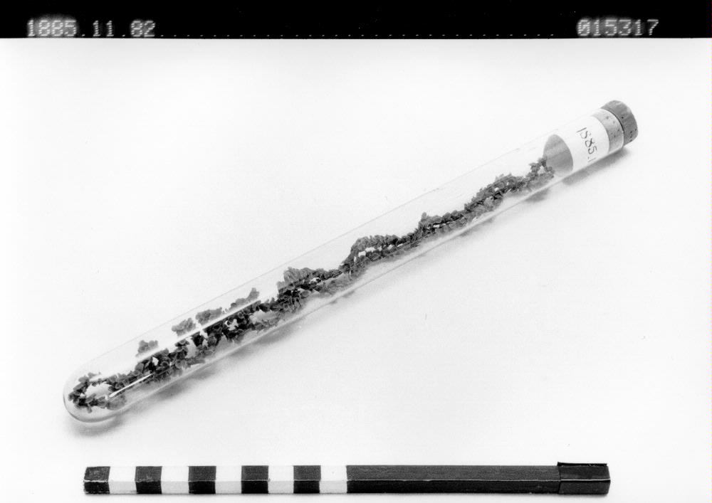 Halsband för nygift kvinna av torkade blommor uppträtt på tråd. Förvaras i laboratorieglasrör med kork. Kommer från Zapatera, en ö i Nicaraguasjön. Eftersom halsbandet är för känsligt att ta ut för mä...