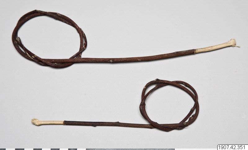 Två kvistar som används till tandborste. En bit av barken skalas av och änden ruggas upp så att en liten borst bildas för att rengöra tänderna. Den andra änden är ihoprullad.