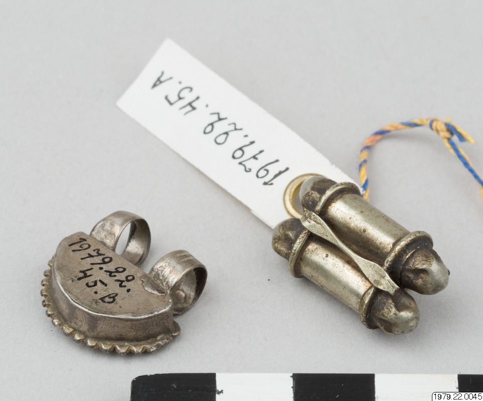 Två berlock som sannolikt är tillverkade i silver.