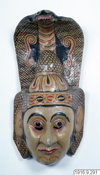 1916.9.291 Name and identification of character The queen of cobras, naga kumari (Sin.). Context A cobra demon character in stage two in a Kolam performance. Material Wood, vel-kaduru (Sin.) (Nux v...